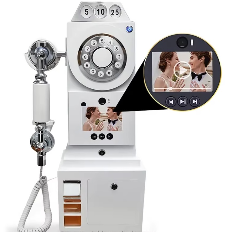 Εκτός από την κορυφαία τεχνολογία, το τηλέφωνο ευχών με βίντεο είναι ένα αληθινό έργο τέχνης. Με το αξεπέραστο vintage design του, λειτουργεί ως ένα εκπληκτικό διακοσμητικό στοιχείο που θα κλέψει την παράσταση σε κάθε εκδήλωση. Είναι το καλύτερο vintage τηλέφωνο ευχών που έχετε δει ποτέ, συνδυάζοντας τη ρετρό αισθητική με τη σύγχρονη λειτουργικότητα.